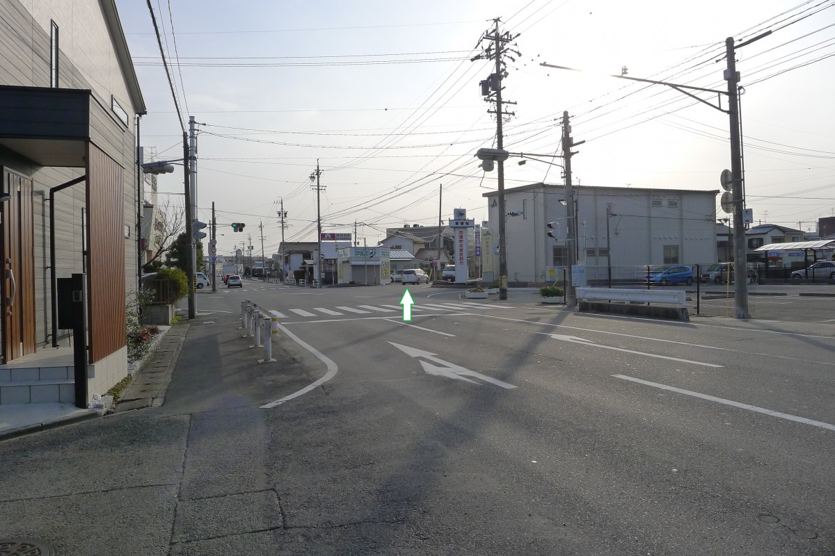 JAとマルハンのクリーニング屋さんの間の道になります。