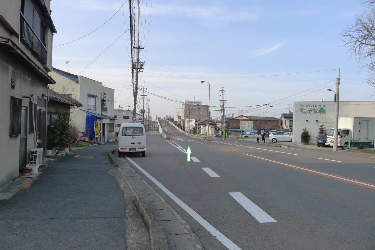 枇杷島橋を北上し、そのまま直進して下さい。